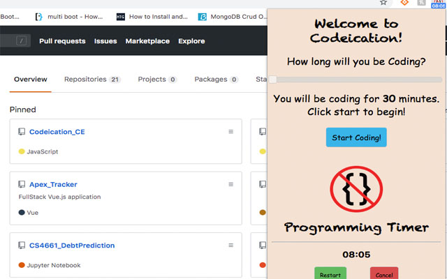 How long are you going to code for? A Chrome Extension for relentless programmers.